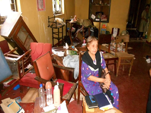 A very pleasant andpopular lady, she had been in the school when hundreds of violent men forcibly entered the premises, ransacked the place, damaged furniture, crockery and every